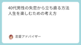 世間では「40代の恋愛は難しい」と言われることがありますが、実際にはそんなことはありません。でも、失恋直後は、「もう自分は恋愛対象にならないのでは?」と悲観的になりがちです。